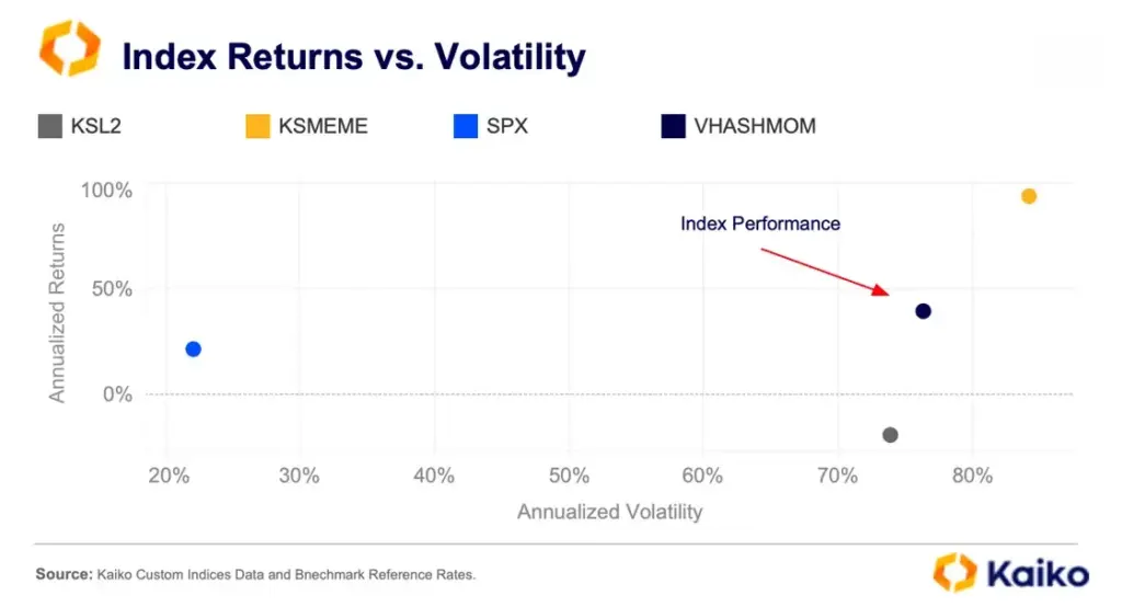 The index also offers competitive risk-adjusted returns. VHASHMOM’s annualized returns since inception are nearly 40%. This places the index well above other digital assets in terms of returns. It even outperforms broad-based equity indices, such as the S&P 500.